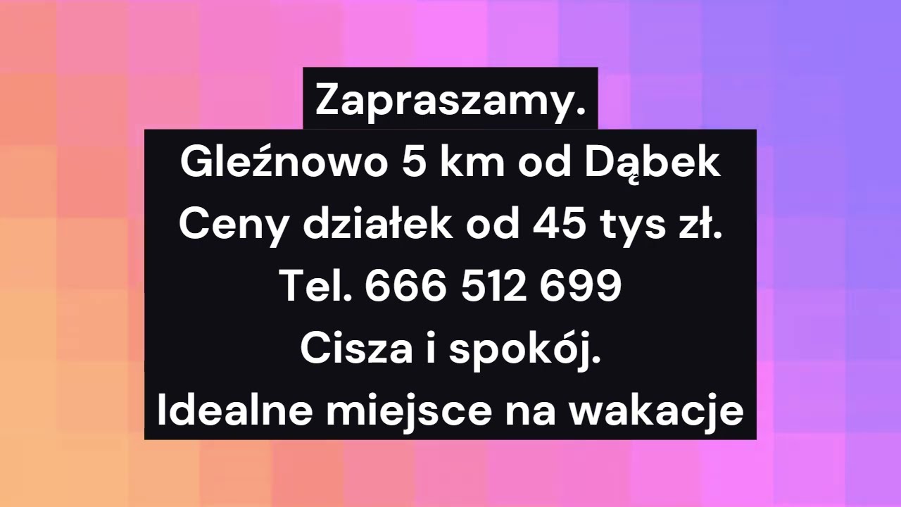 miejscowość - Gleźnowo- 5 km do Dąbek, 12 km do Darłowa. Oaza ciszy i spokoj. Zobacz film koniecznie, Masz pytania napisz maila @